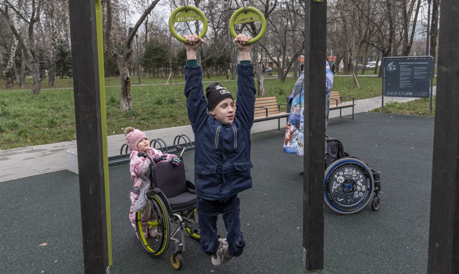 В детдоме у Саши не было коляски, и он передвигался на тачке или скейтборде